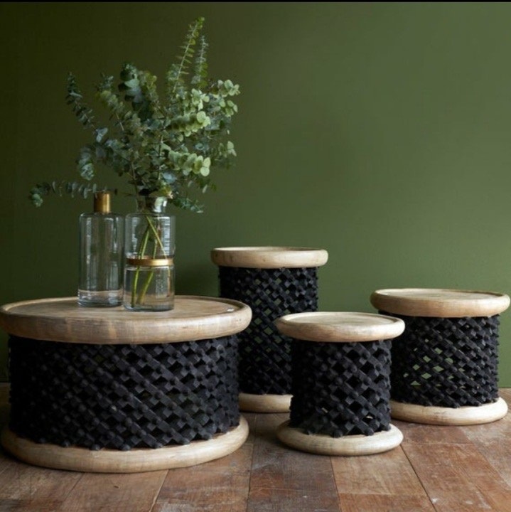 Known as Bamileke stools, sometimes referred to as bird’s nests or donuts, they were traditionally used only for special ceremonial seating by the Bamileke Tribe of Cameroon. The tribe’s woodworkers would build these for auspicious occasions, with the biggest and best reserved strictly for the King’s use.