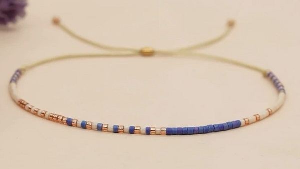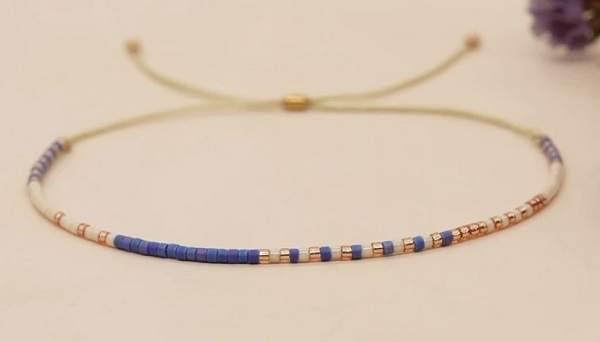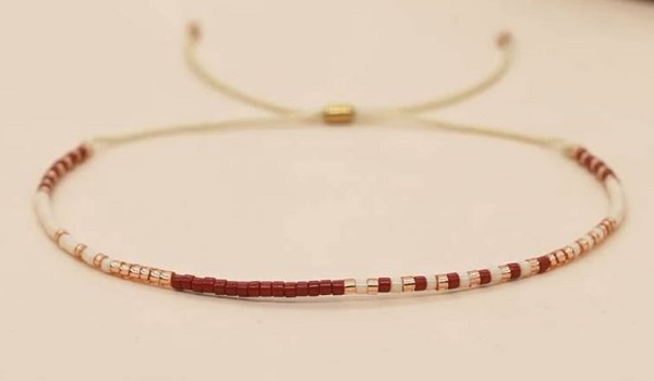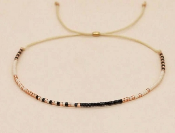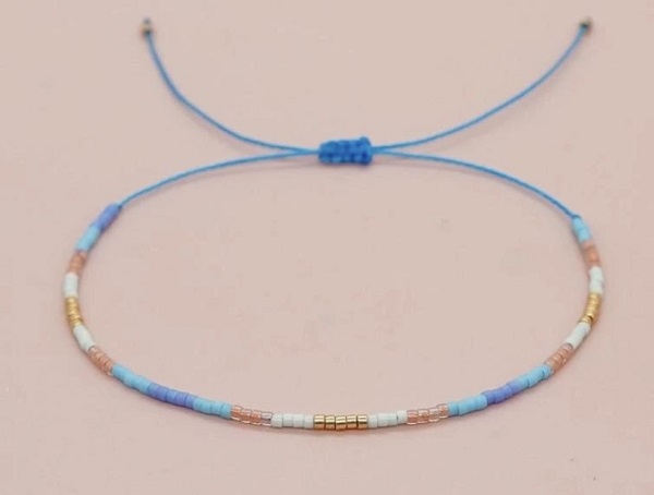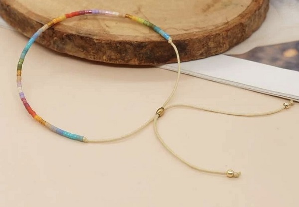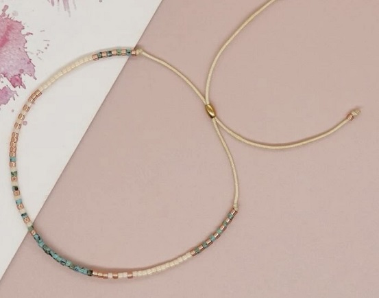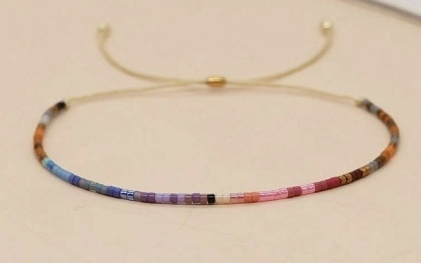 Dainty beaded pull bracelet in assorted coloured beads.