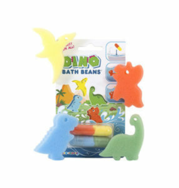 Bath Beans provide Magical bath time entertainment for children, (and the young at heart!) Simply place them in warm water, and watch as they unfold into sponge toy characters. Each pack contains two jumbo capsules, and each capsule contains one big or two or more slightly smaller sponge characters. See the delight on childrens faces as the cute characters magically appear! There are 8 regular theme packets. We also make specialized packs as the Christmas Bath Beans. All Bath Beans are compliant with CE toy regulations. Dino Bath Beans stomp out in your bath to become brontosaurus, triceratops, stegosaurus, and pterodactyl. A boy’s first choice!