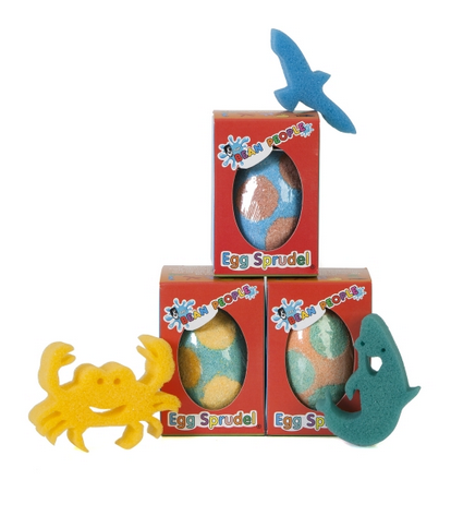 The Egg Sprudel range comes in three forms; blue egg with red dots, turquoise egg with yellow dots & orange egg with green dots. Egg Sprudels are carefully themed to release sponges with egg-laying animals only, which will encourage educational fun for all involved.
