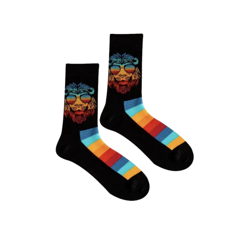 Add a touch of untamed elegance to your everyday outfit with our lion Crew Socks.