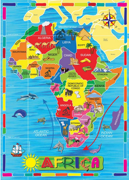 Learn about African countries, their neighbours and oceans.