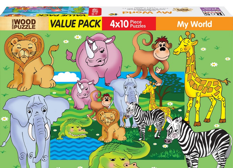 My World wooden puzzles are the perfect jigsaw puzzles for toddlers, offering huge value with 4 different self-correcting 9 and 10 piece puzzles, focused on curriculum-friendly themes.