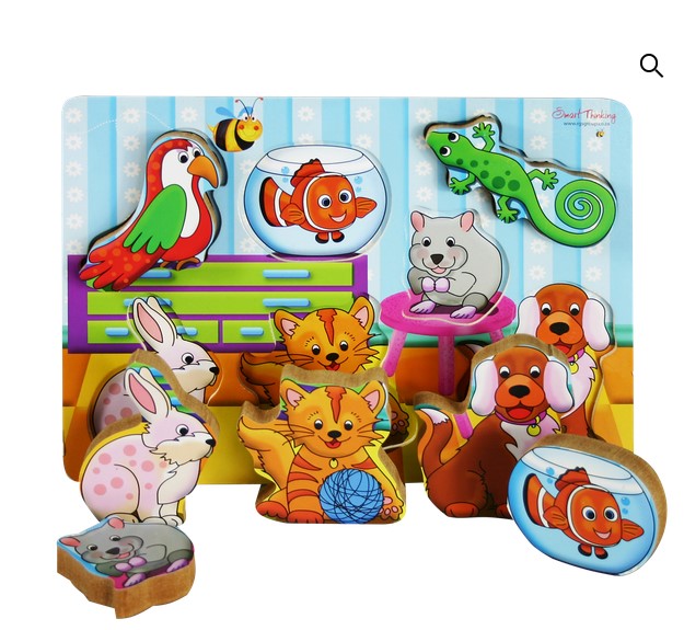 A beautifully illustrated wooden tray puzzle containing 7 chunky pieces. Your toddler can build the self-correcting puzzle or free play with the extra chunky pieces.