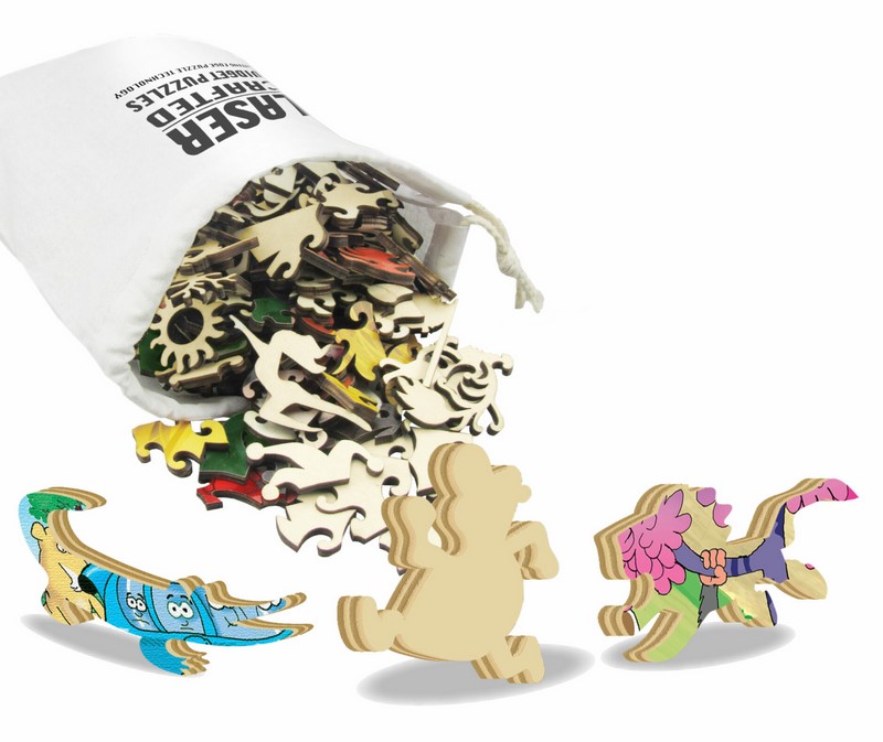 These unique and intricately crafted wooden puzzle pieces are laser cut to ensure smooth edges that fit perfectly together and every piece is different. The unique themed widget elements add a fun twist to building this puzzle. Extra thick wooden pieces ensure longevity for repeated handling. A material tote bag is included for easy storage of your puzzle pieces.